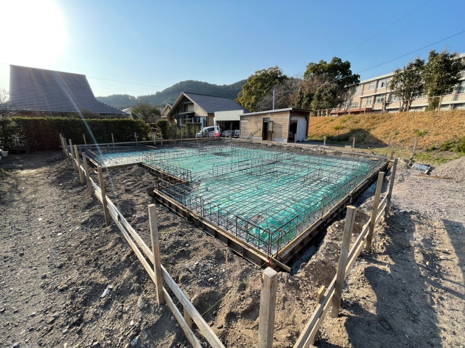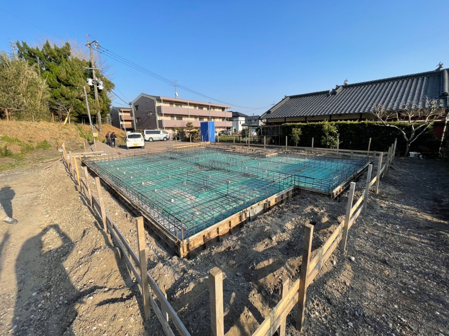 下記写真は基礎工事の中の「配筋」作業が完了した際のものです!ヽ(*’▽’*)ノ