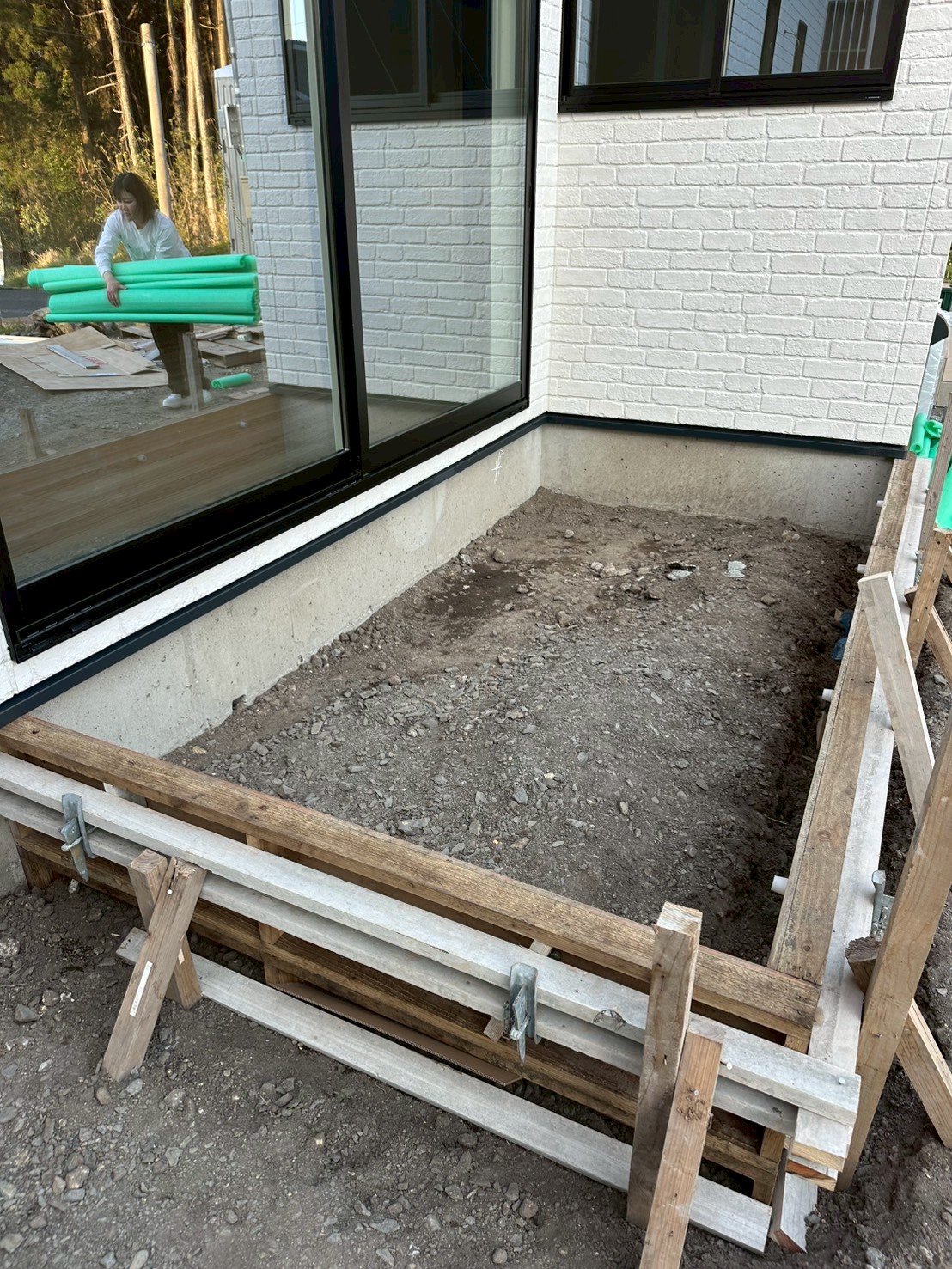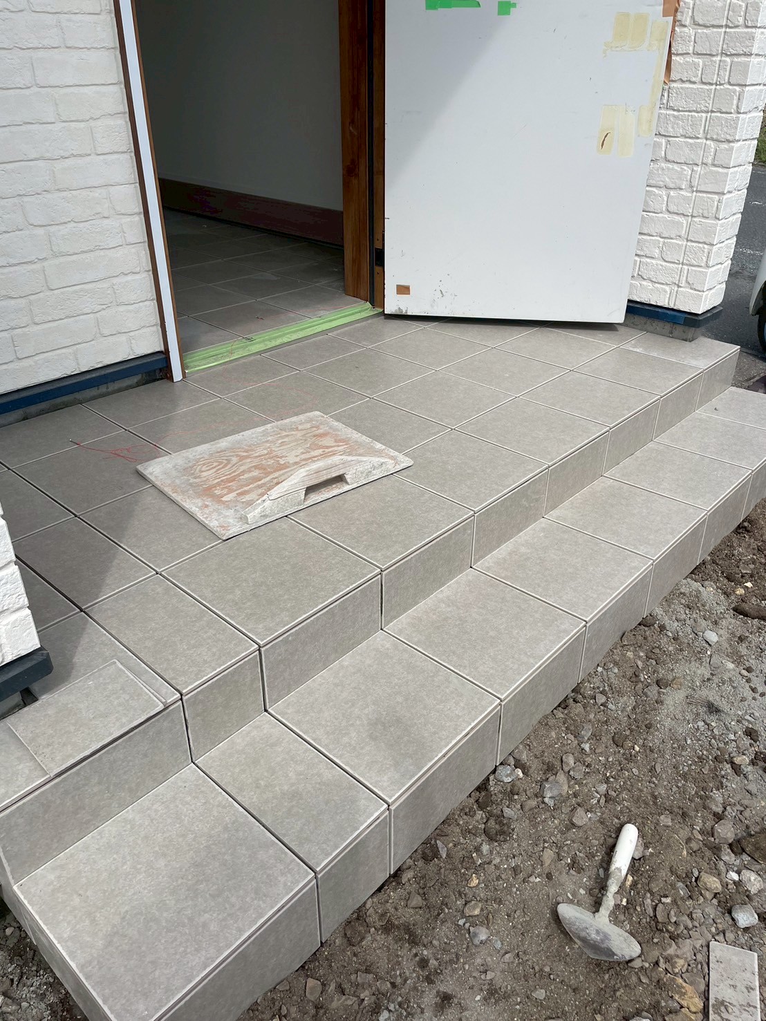 外回りでは、玄関周りなどにタイルが施工されました。タイルの色やデザインによって、家の顔である外観の印象も大きく変わります。今回は落ち着いた色合いですね♪
