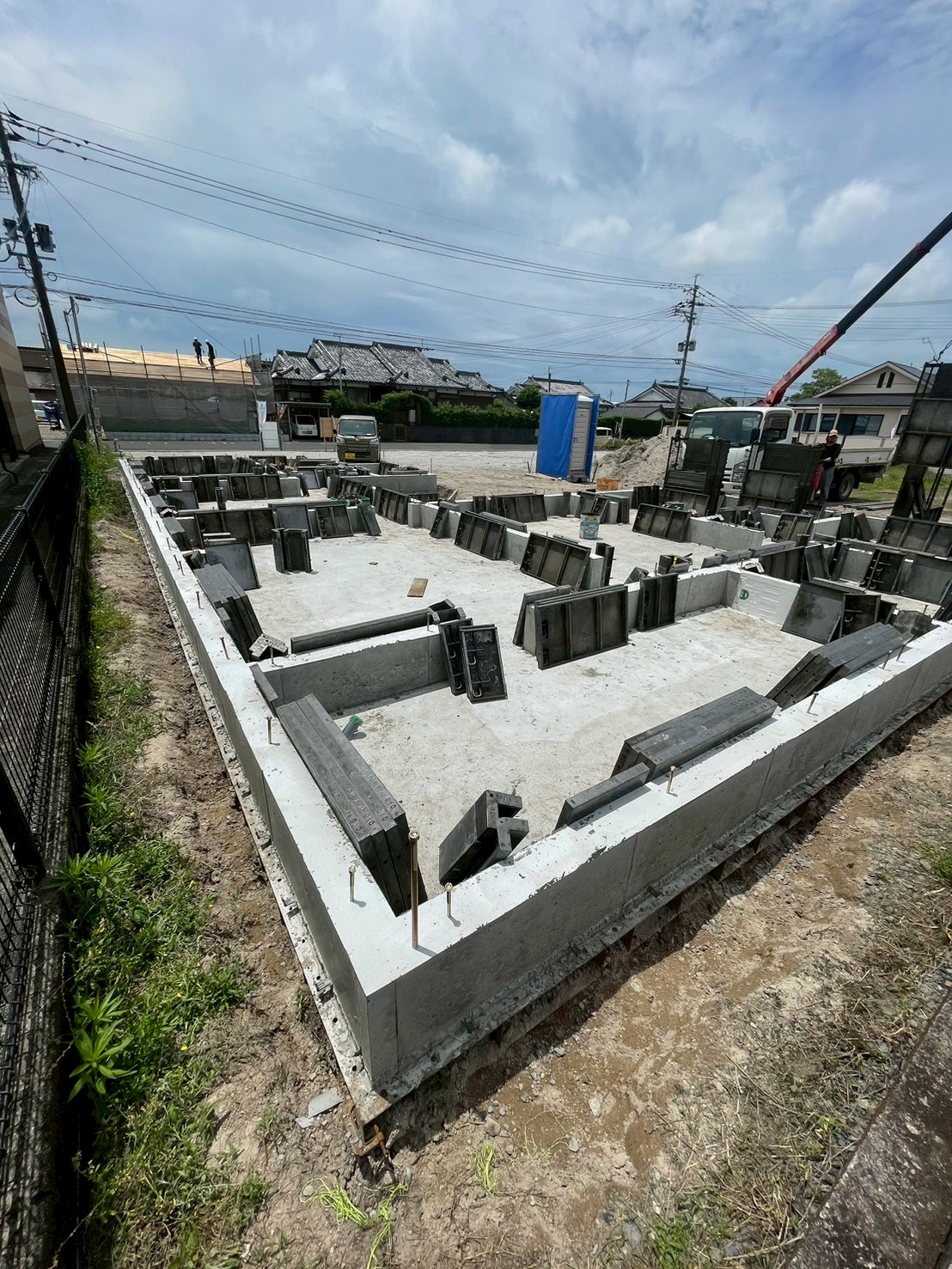 前回の地鎮祭・地盤改良から約1ヶ月半がすぎ、いよいよ建物の“かたち”が見えてきました!