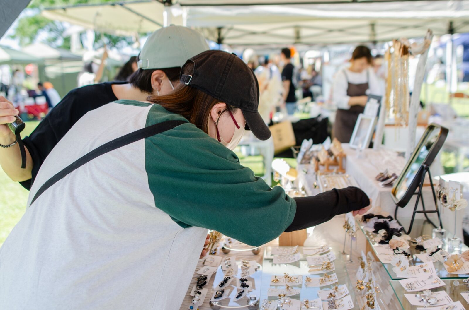 ハンドメイドアクセサリーやバッグ、小物などがずらりと並びました。