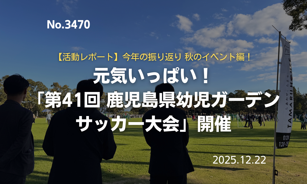 さて、本日は私たち田丸ハウスが特別協賛として応援させていただいている、 「しあわせ、たまる タマルハウスカップ 第41回 鹿児島県幼児... 詳細はこちら