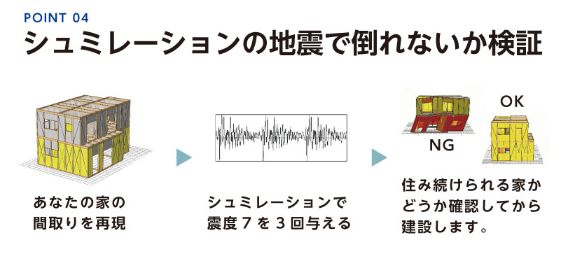 繰り返し大地震が発生しても、住み続けることができる地震に強い家です。