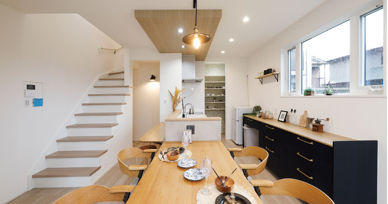 キッチンからの家事動線、洗濯動線、収納など「家事動線」のいい間取りをご覧になれます。