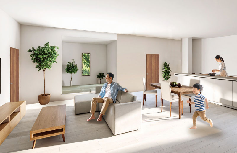 地震に強い構造だからできる、従来の木造建築ではできない「大空間・大開口」の立体的な広がりのある空間を実現!