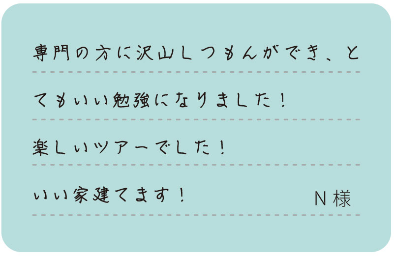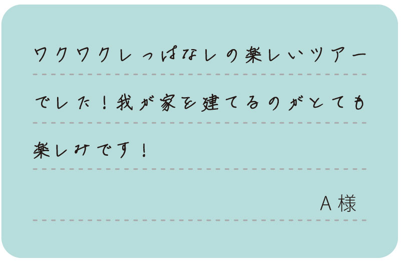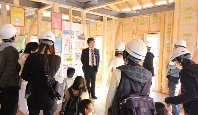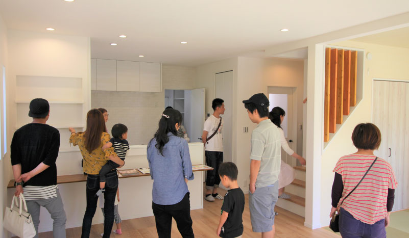 田丸ハウスで建てられたオーナー様宅を見学します。モデルハウスとは違って実際に住まわれてるお家を見学できる貴重な体験。