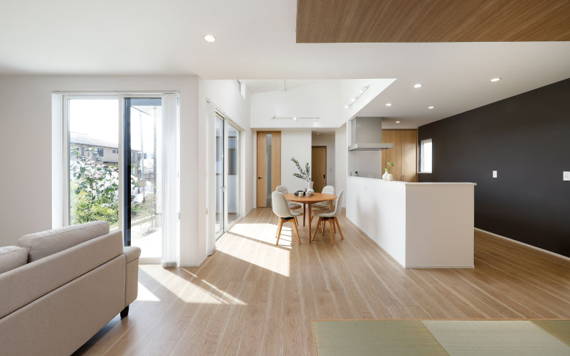 地震に強い構造だからできる、従来の木造建築ではできない「大空間・大開口」の立体的な広がりのある空間を実現!