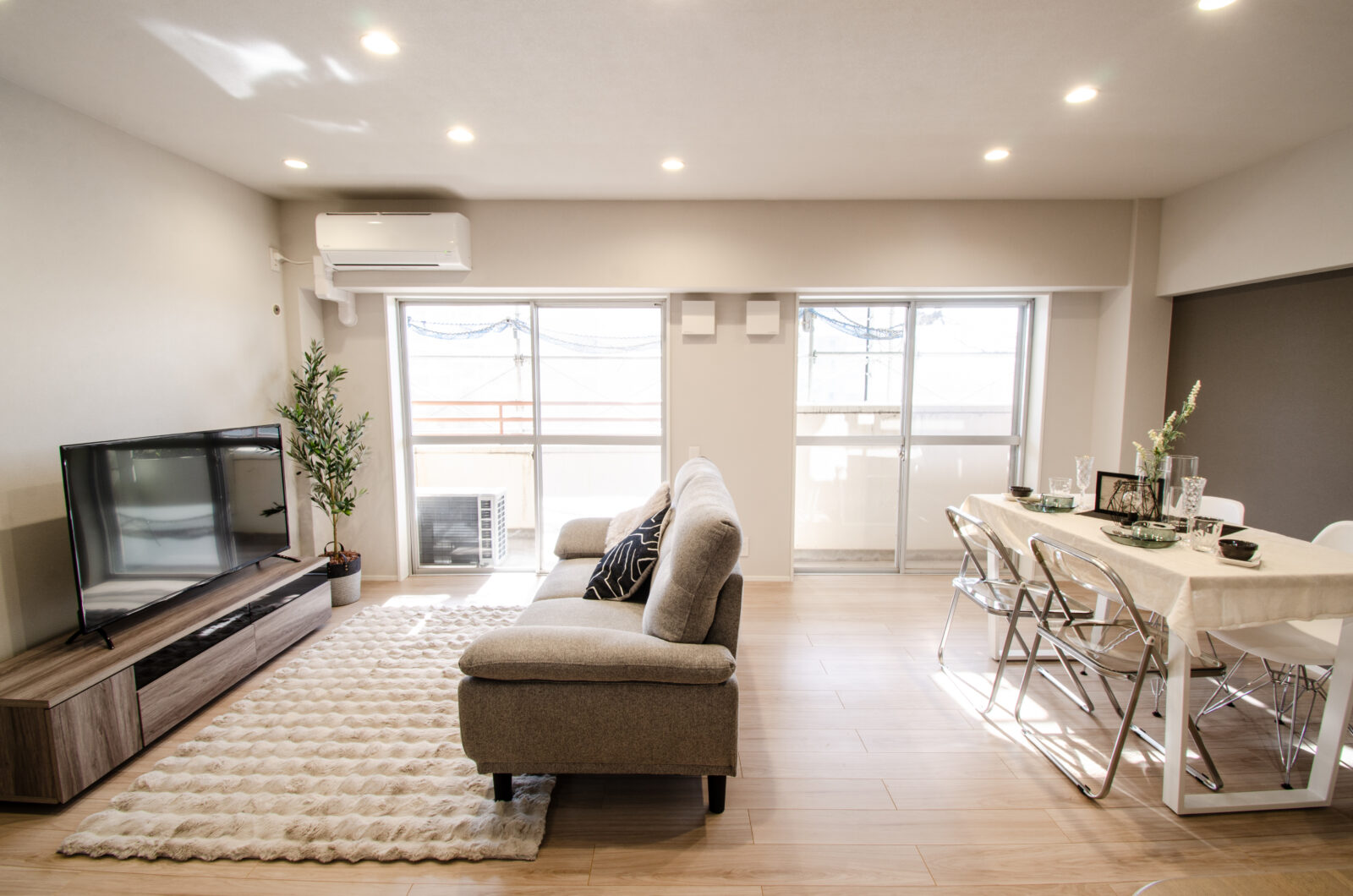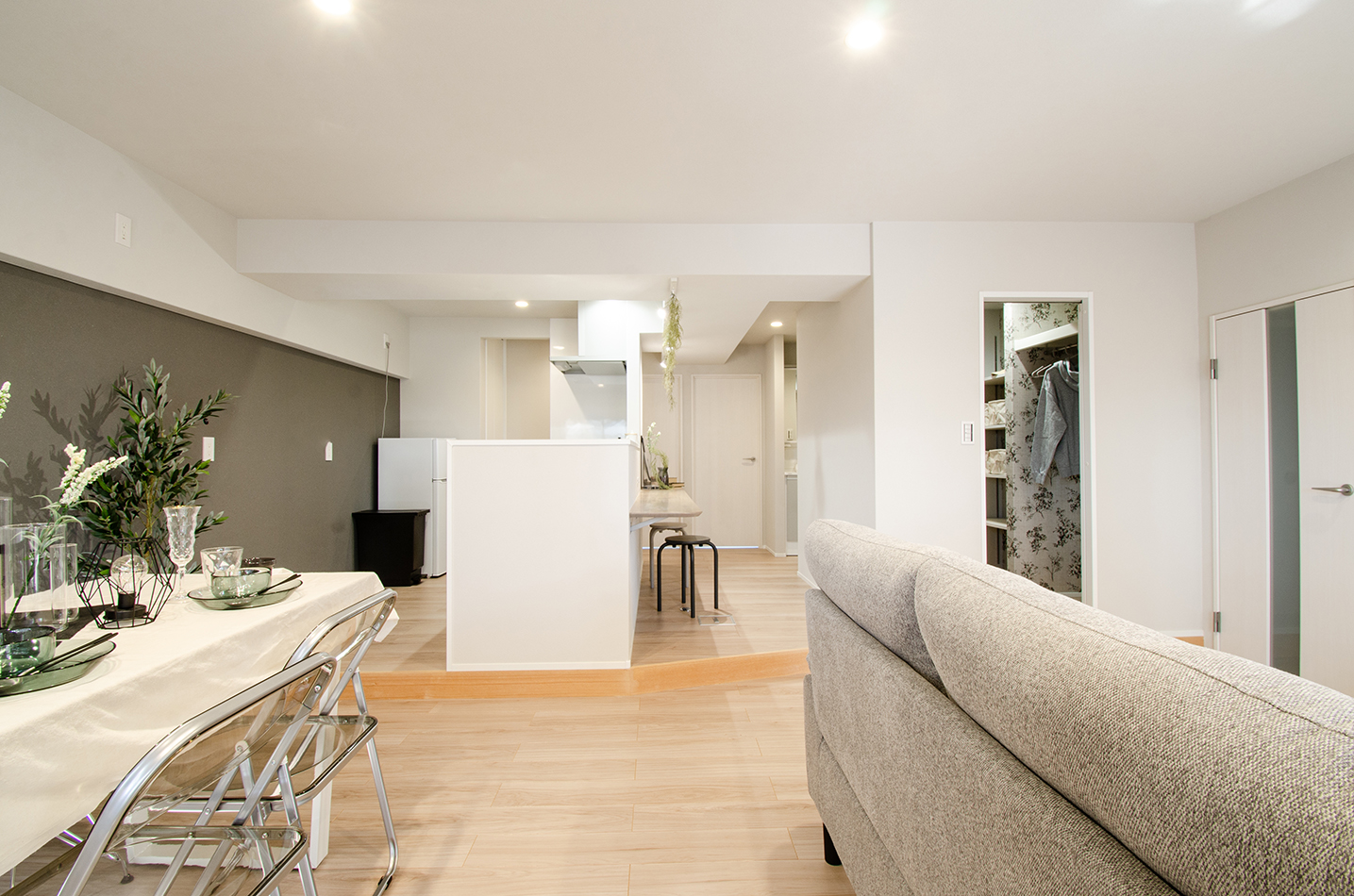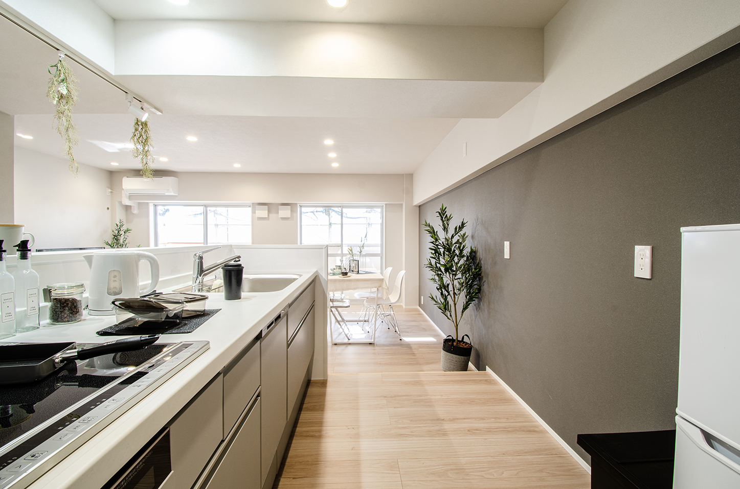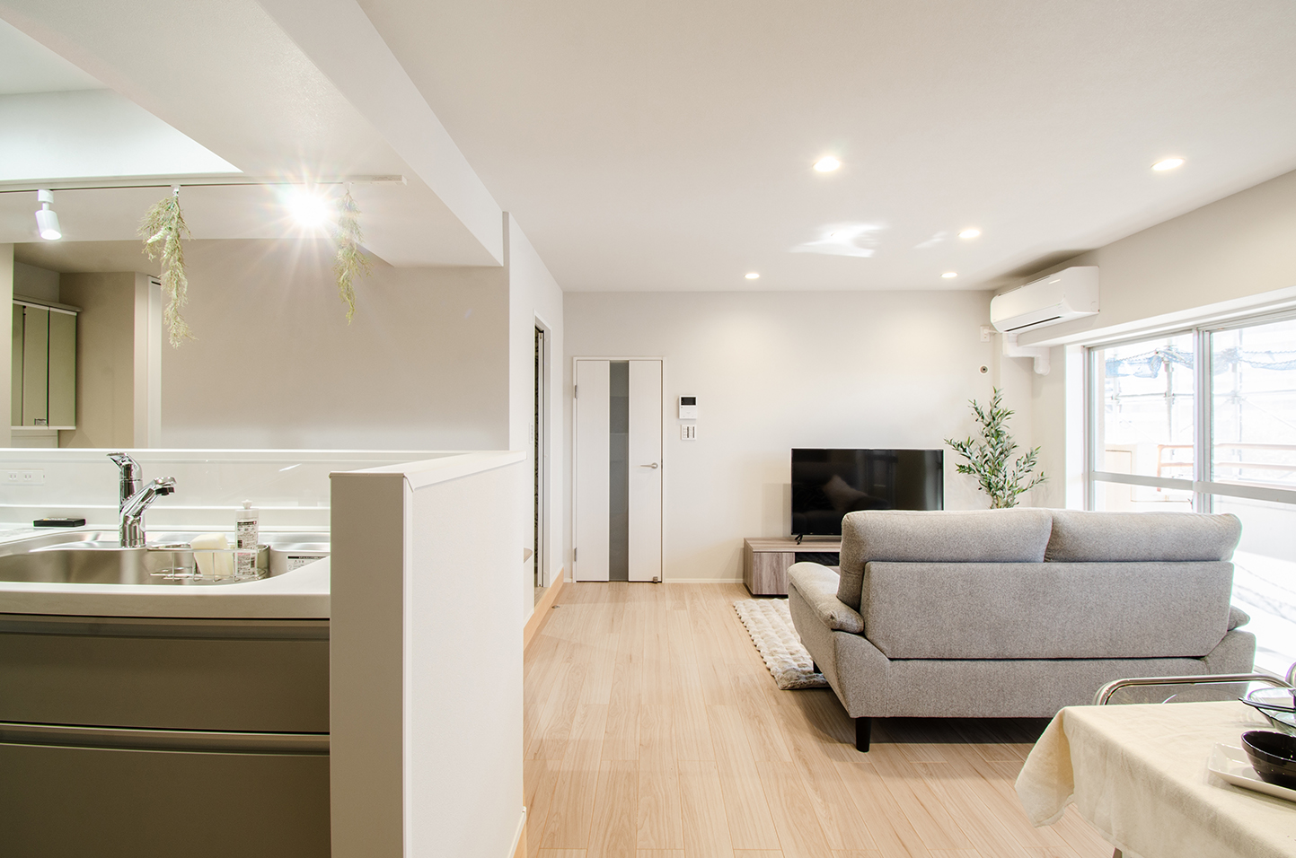 落ち着いた街並みに佇む鴨池ハイムに、ファミリーの暮らしを丁寧に考えてフルリノベーションされた3LDKの住まいが誕生しました。南からのやわらかな光が差し込むLDKは、家族が自然と集まり、日々の会話が生まれる住まいの中心となる空間で、キッチンからリビング全体を見渡せる間取りは、家事をしながらでも子どもの様子に目が届く安心感をもたらします。さらにリビングのすぐ横にはウォークインクローゼットを設け、家族の衣類や日用品、季節物までまとめて収納できるため、生活感を抑えながらLDKをすっきりと保てるのも大きな魅力です。3つの個室を備えた3LDKは、子ども部屋や寝室、在宅ワークスペースなど、家族の成長やライフスタイルの変化に合わせて柔軟に使い分けることができ、長く快適に暮らせる設計。キッチン・浴室・洗面・トイレといった水まわりも一新され、毎日使う場所だからこそ実感できる清潔感と使いやすさで、忙しい朝や一日の終わりの時間まで心地よく支えます。学校や買い物施設、医療機関が身近にそろう鴨池新町という安心の立地と、収納力と住み心地を高めたリノベーションが融合したこの一室は、家族の「今」と「これから」に寄り添いながら、日常を穏やかに、そして豊かに育んでいく住まいです。