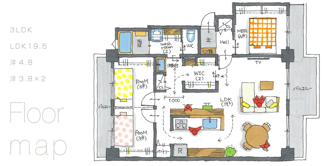 間取り : 3LDK(洋4.8・3.8・3.8・LDK19.5)