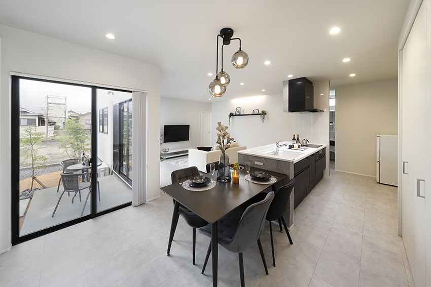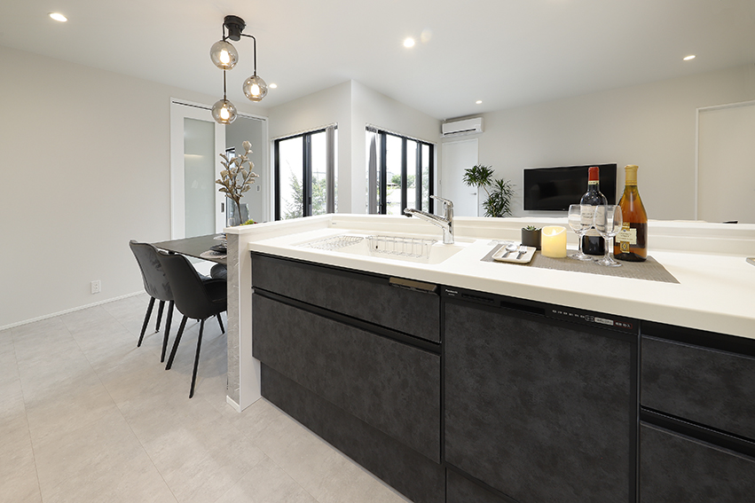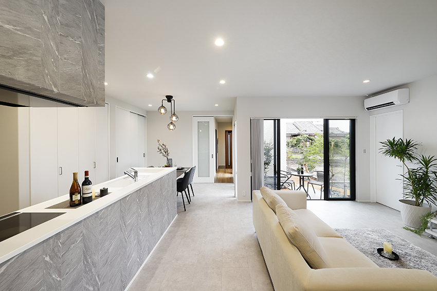 明るく開放的なリビング。キッチンから家族を見守れる安心の間取り。スムーズな家事動線と、考え抜かれた収納計画。デザインだけでなく「暮らしやすさ」をどう設計するか。その答えを体感できるのが、この札元モデルです。