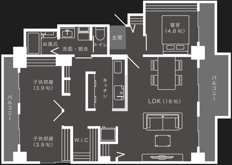 間取り : 3LDK(洋4.8・3.9×2・LDK18)